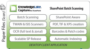 KnowledgeLake Capture Server allows for the scanning of a batch of documents and is intended for high volume scanning. This tool integrates with multi-function scanners and provides many of the same features as Capture. Capture Server is great for scanning batches of invoices, contracts or batches of documents that can automatically indexed into SharePoint through barcode integration.