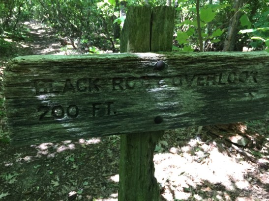 Forty three years ago, it was just a walk in the woods, however, this time it was a little rougher. We only had a rough idea that it would take about an hour to hike to the spur leading to the Black Rock overlook. We were able to park the car on the parking lot on the Parkway. The Appalachian Train is only about a quarter of a mile from the Parkway at this point. We hiked down to the trail head and saw the sign above.